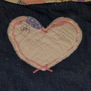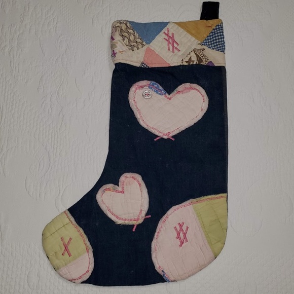 Handmade Christmas Stocking Cut Quilt and Denim with Cat Face Button