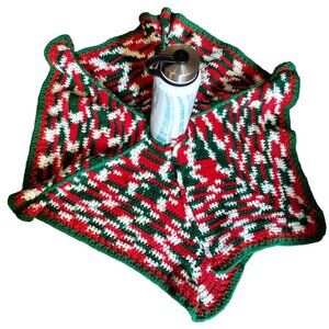 Handmade Christmas Tree Skirt Medium Table Cover Set Crochet Vintage Holiday