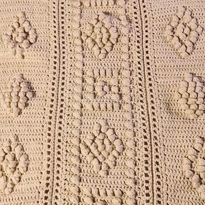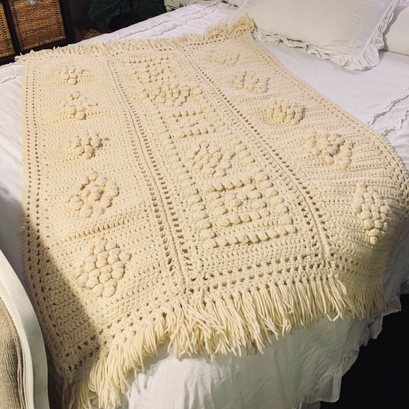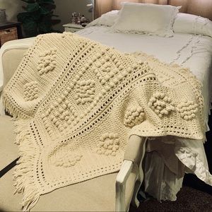 Handmade Chunky Knitted Off-White Blanket Throw. Beautifully made! Has three rows with a chunky knit pattern. In excellent condition!