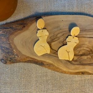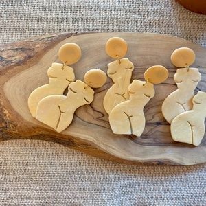 Handmade Clay Earrings | Forms of a Woman Silhouette | Gold/Translucent Blend