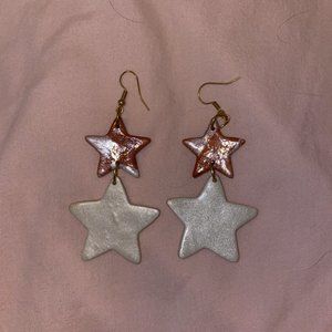 2.5 inch clay earings. Cream and burnt orange with light sparkles. Never worn.