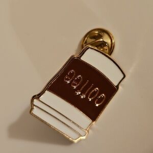 Handmade Coffee Enamel Pin Caffeine lover Brooch White gold and brown 1"