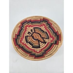 Handmade Coiled Woven African Boho Southwest Primitive Bowl Basket 10" Butterfly