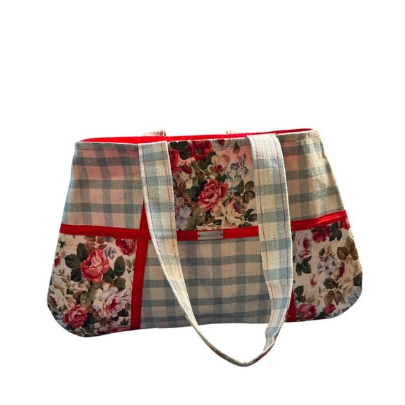 Handmade Color Block Purse Tote Red Blue Flowers Plaid