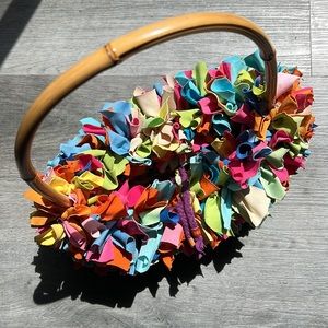 Handmade Colorful Handbag Real Bamboo handle Pictures are Actual item Used
