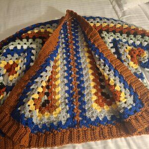 Handmade Colorful Crocheted Hexagon Open Cardigan, size XL. 23" armpit to armpit, 26" top to bottom. Granny Square style made with many colors of yarn, will match many of your tops. I've made over 50 unique cardigans for many pleased customers.