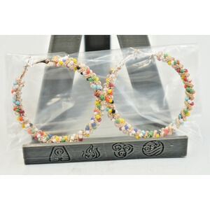 Handmade Colorful Seed Bead Hoop Earrings Boho Style 2 1/2" Diameter Lightweight