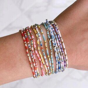 Features: Playful multi-strand design with delicate seed beads in gold tones, lightweight and comfy. Adds a fun pop of color to any casual or boho ensemble, perfect for summer vibes, beach days, or festivals.