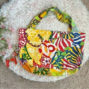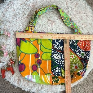 Handmade Colorful Vintage Retro Style Mixed Geo Floral Print Patch Tote bag