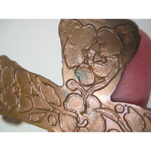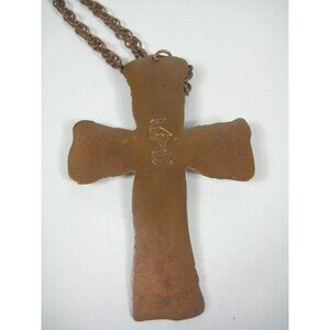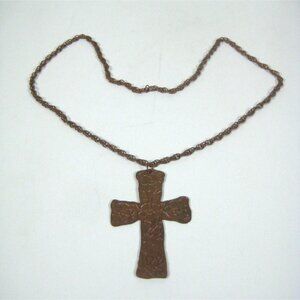 Handmade Copper Cross Pendant Necklace Floral Design Hammered CVG 30 inch Vintag
