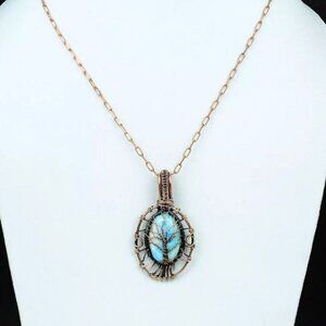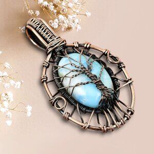Features: Wire‑wrapped Tree of Life ✦ oval Larimar ✦ copper link chain included