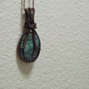 Handmade Copper Wire Wrapped Labradorite Pendant