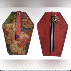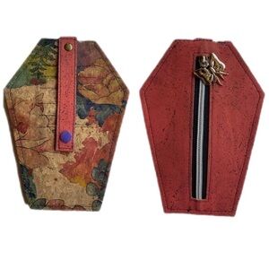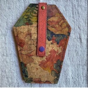 Handmade Cork flower bow pull card holder wallet watercolor multicolor