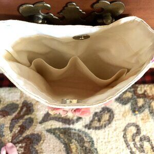 Handmade Cotton Crossbody Bag with Magnetic Snap Closure And Shabby Chic Flower