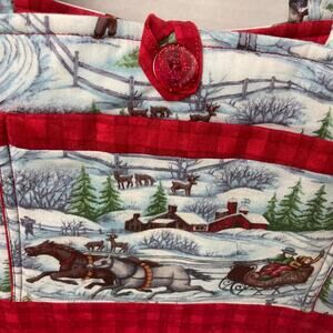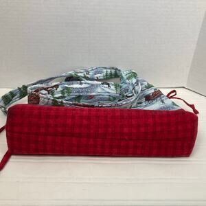 Handmade Crafting Tote Bag Red Christmas Fabric Plaid Quilted Crafts Sleigh Ride