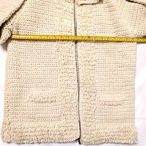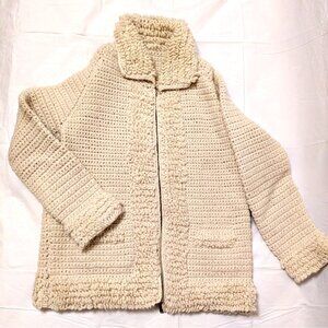 Handmade Cream Crochet Wool Jacket With Zipper Closure & Pockets - Cozy & Warm