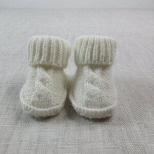 Handmade Crib Booties Baby Shoes White Knitted Wool Soft Warm Infant Cuff Design.