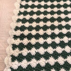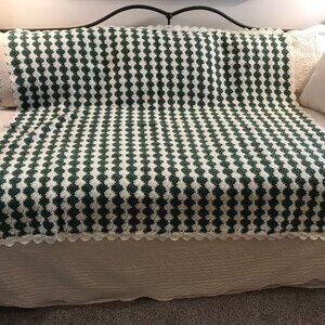 Handmade Crochet Afghan Blanket in Green and Crème - Brand New - Never Used!