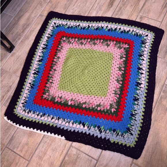Handmade Crochet Afghan Lap Throw Blanket Tablecloth Multi-Color 37x37