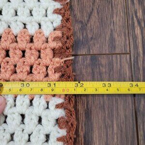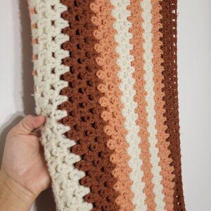 Handmade Crochet Afghan Throw Blanket Multicolored Striped Brown White Orange