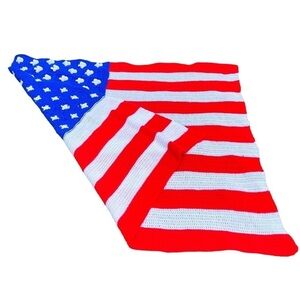 Handmade Crochet American Flag Afghan Patriotic Red White and Blue Huge! USA GUC