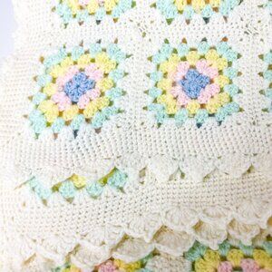 Handmade Crochet Baby Blanket Granny Squares 24" X 40" Pastel Colors Afghan