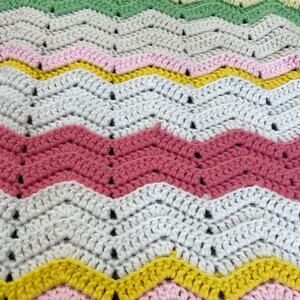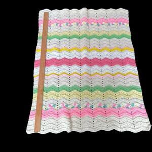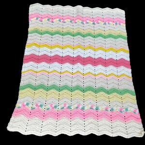 Handmade Crochet Baby Blanket Pastel Chevron Knit Pink Green White Yellow