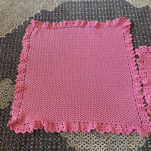 Handmade Crochet Baby Blanket Pink & White 35 X 33 & Shoulder Crochet Burp Pad