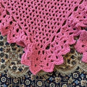 Handmade Crochet Baby Blanket Pink & White 35” X 33” & Shoulder Crochet Burp Pad