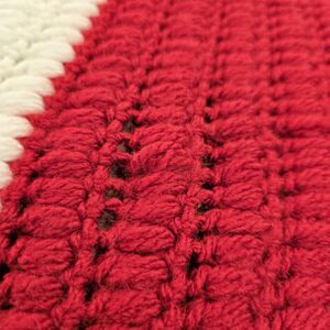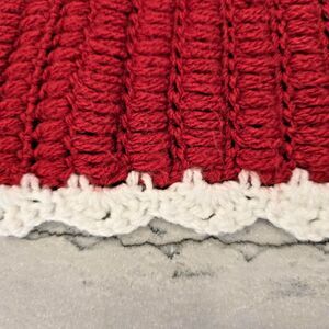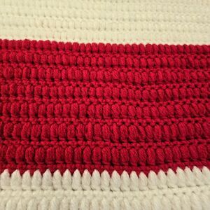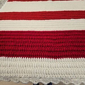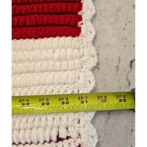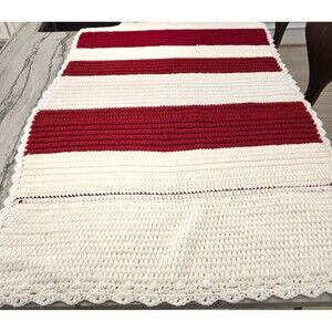 Handmade Crochet Blanket Throw Red White Striped Scallop Edge Soft Acrylic 32x48
