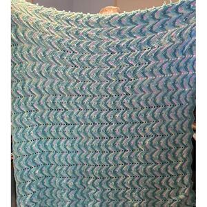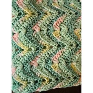 Handmade Crochet Blanket With Zigzag Pattern light & dark green pink & yellow