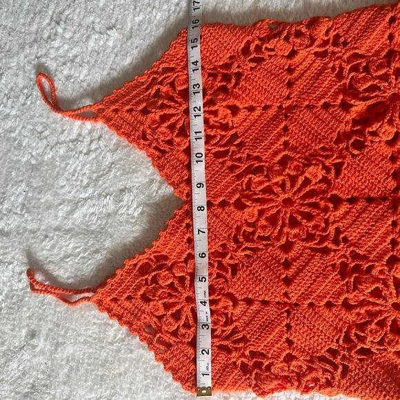 Orange crochet tassel tank top with a boho, indie vibe