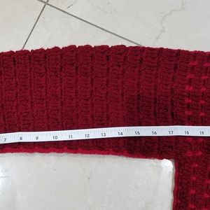 Handmade 2 tone red crochet cardigan sweater. Open front, straight sleeves, turn down collar with lapel flaps. No tags, No size, Please see measurements. Brand new, Never worn.