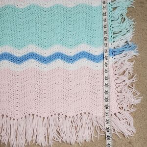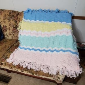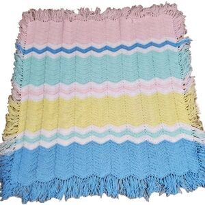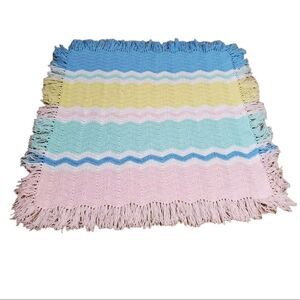 Handmade Crochet Chevron Ripple Baby Blanket Lap Afghan Multicolor With Fringe