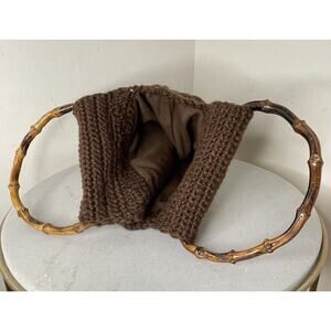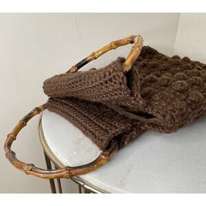 Handmade Crochet Chunky Knit Boho Brown Hand Bag 70s Grannycore Bamboo Handles. Condition is Pre-owned. Shipped with USPS First Class.
