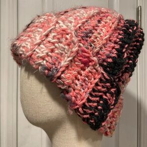 Chunky crochet knit double strand upcycled yarn multi fiber beanie