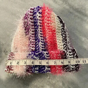 Handmade Crochet Chunky Ribbed Upcycled Multi Fiber Scrappy Yarn Beanie Hat D38