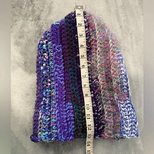 Chunky crochet knit double strand upcycled yarn multi fiber beanie