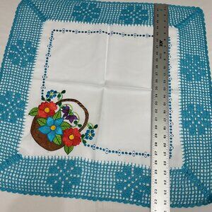 Handmade Crochet & Embroidered Floral Basket Cotton Tablecloth 24x24 Inches