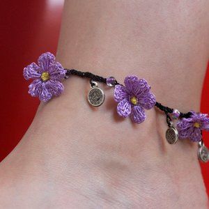 Handmade Crochet Flower Anklet, Ankle Bracelet, Ankle Accessory, purple flower