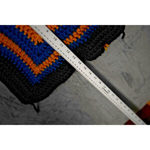 This eye-catching handmade crochet tank top features a vibrant granny square motif in black, golden yellow, and teal blue. Made from thick, quality yarn with wide straps and open sides for an airy fit. Perfect for layering at festivals, beach trips, or summer outings. Estimated to fit Small to Medium with approx. 16" pit-to-pit and 20" total length. Lightweight and breathable, this boho-inspired piece is a true one-of-a-kind.