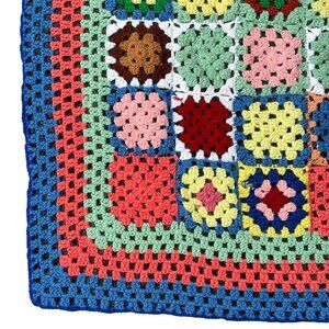 Handmade Crochet Granny Square Throw Afghan 38.5 X 49.5 inch Multi-Color Blanket