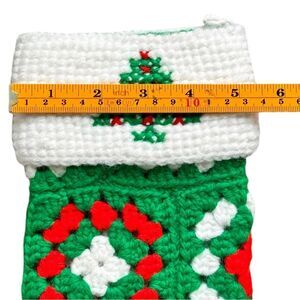 Handmade Crochet Green & Red Christmas Stocking Festive Holiday Decor.
