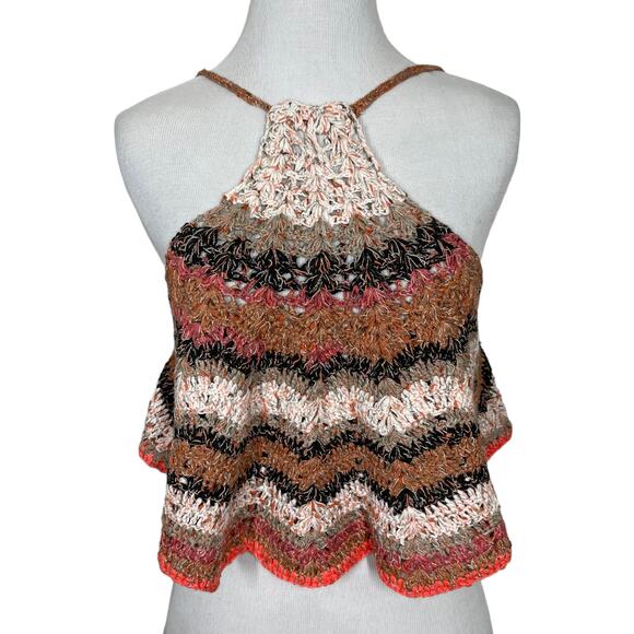 Handmade Crochet Halter Cropped Tank Top Small Cutout Pink Striped Festival Boho