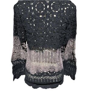 🆕 Handmade Crochet Jacket Black & French Brown Boho Chic Cardigan 100% Cotton