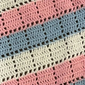 Handmade Crochet Knit Baby Blanket Pink Blue White Tassels Square Pattern