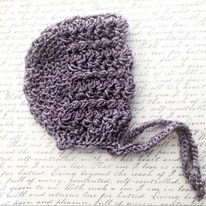 Soft metallic purple newborn baby bonnet. Ideal for everyday use or as a photography prop. Fits most 0 to 3 month babies. Has 1 to 2 inches of stretch.