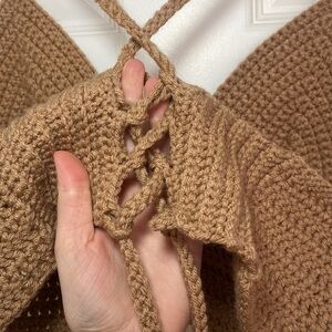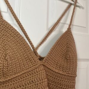 Handmade Crochet Knit Brown Pink Crop Top - fully adjustable