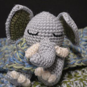 Handmade Crochet Knit Elephant Baby Lovey Blanket gray security plush toy