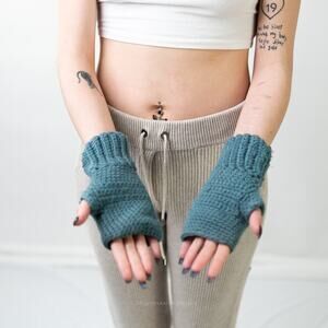 Handmade Crochet Knit Sky Blue Beanie Newsboy Cap & Fingerless Glove Set